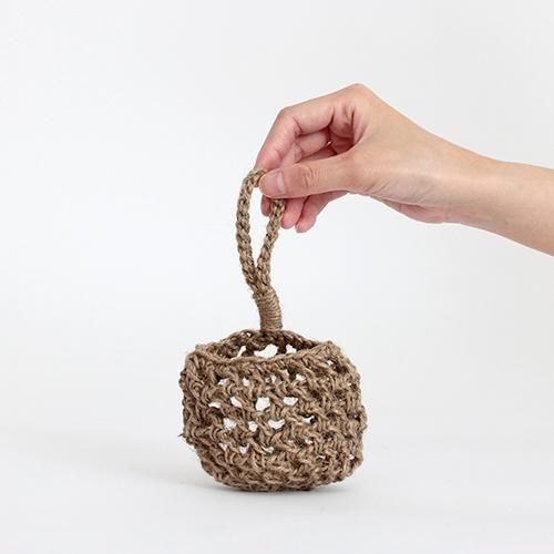 松野屋 麻ひも野菜入れ 小 保存袋 麻ひもかご バスケット 東北クロッシェ 手編み