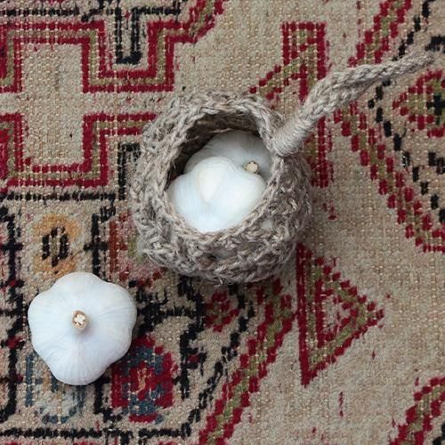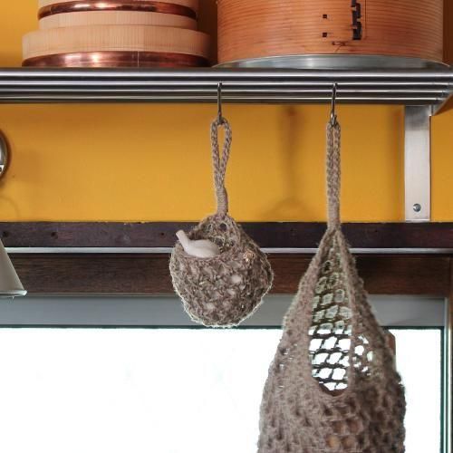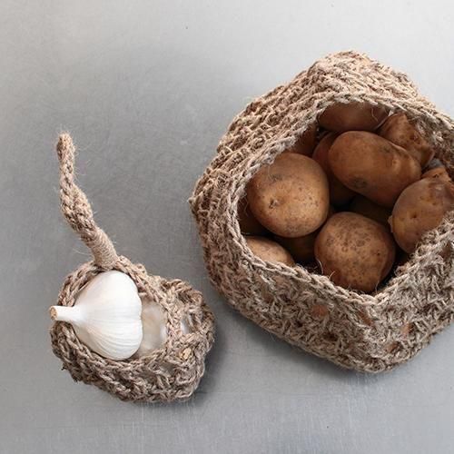 ひとつひとつ丁寧に麻ひもで編まれた野菜を保存するための袋です。